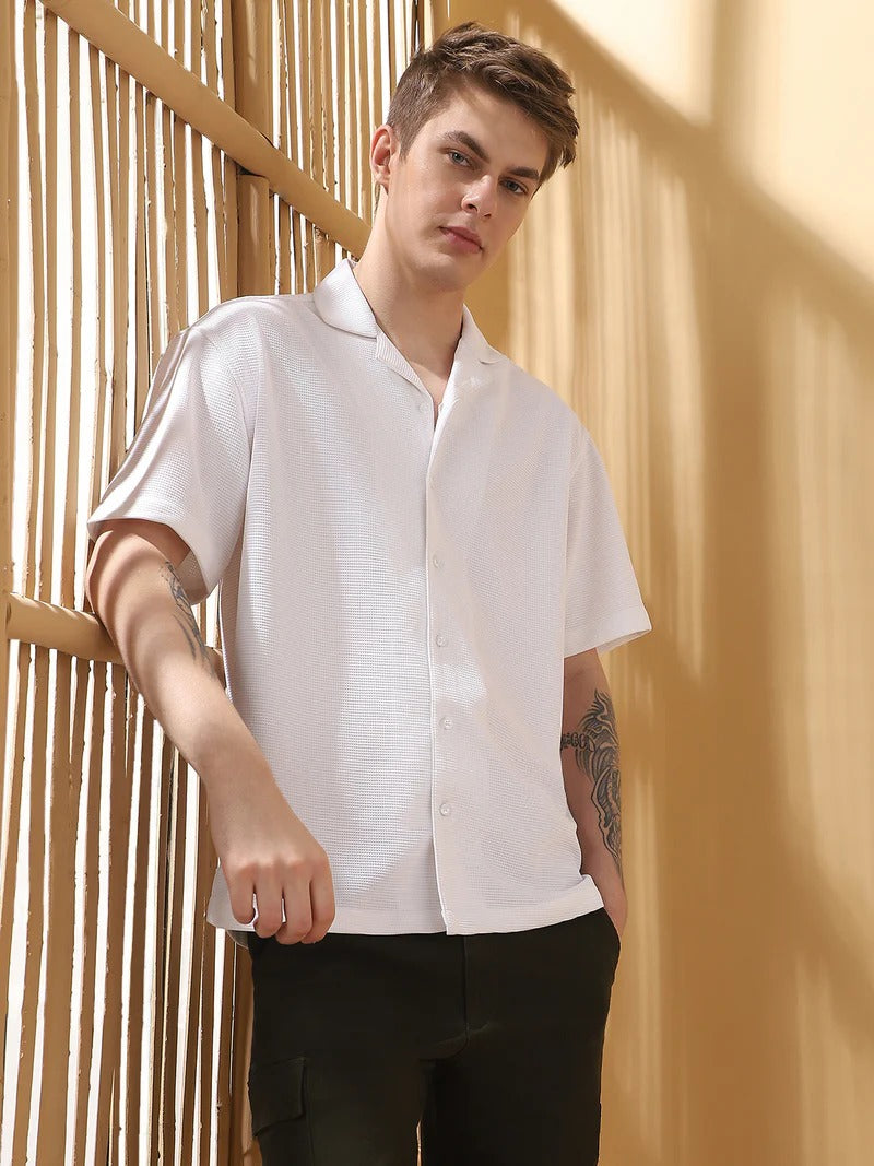 Men’s White Textured Half Sleeve Shirt – Clean & Classy